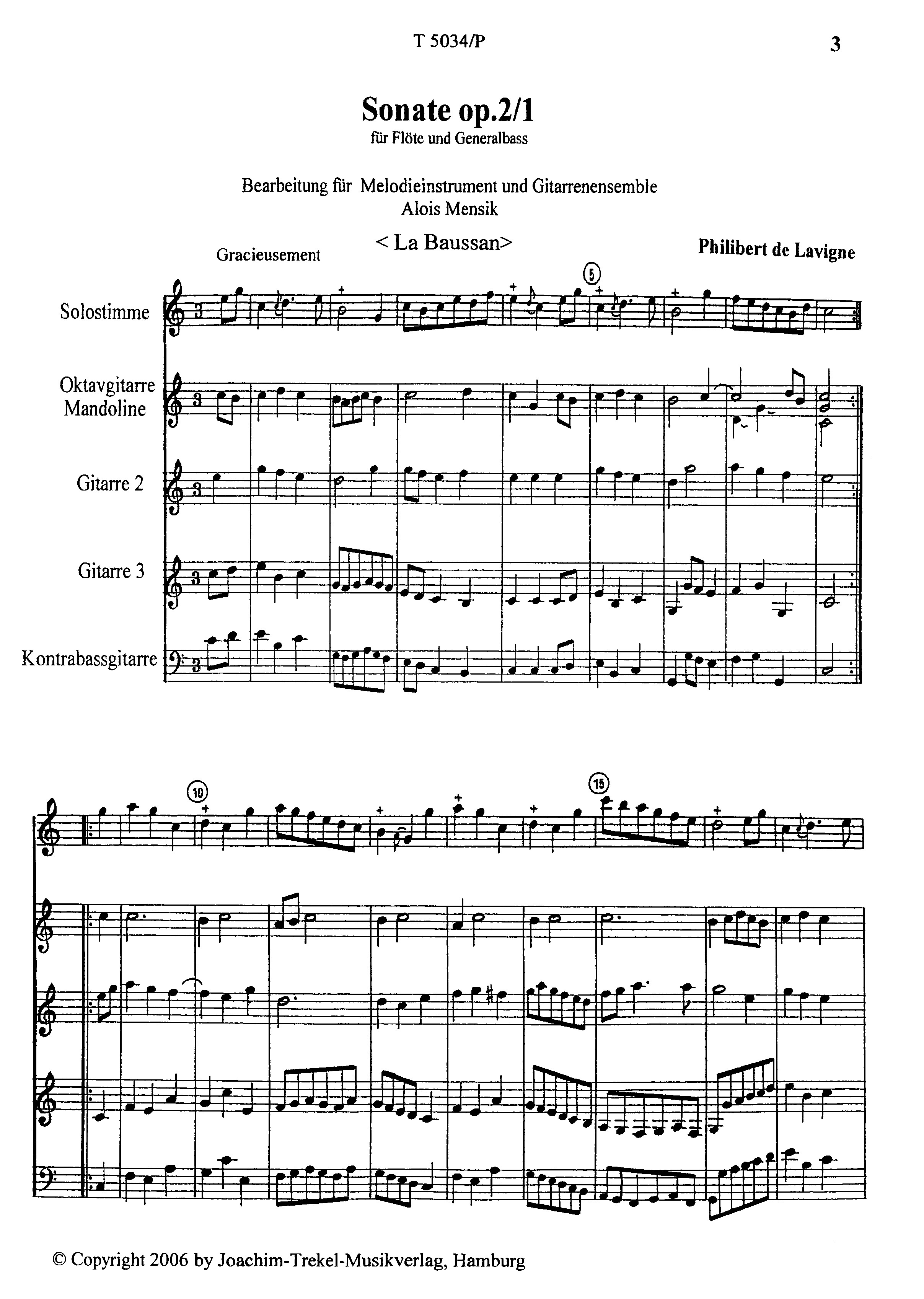 Melodieinstrument, Oktavgitarre oder Mandoline, 2 Gitarren und Kontrabassgitarre