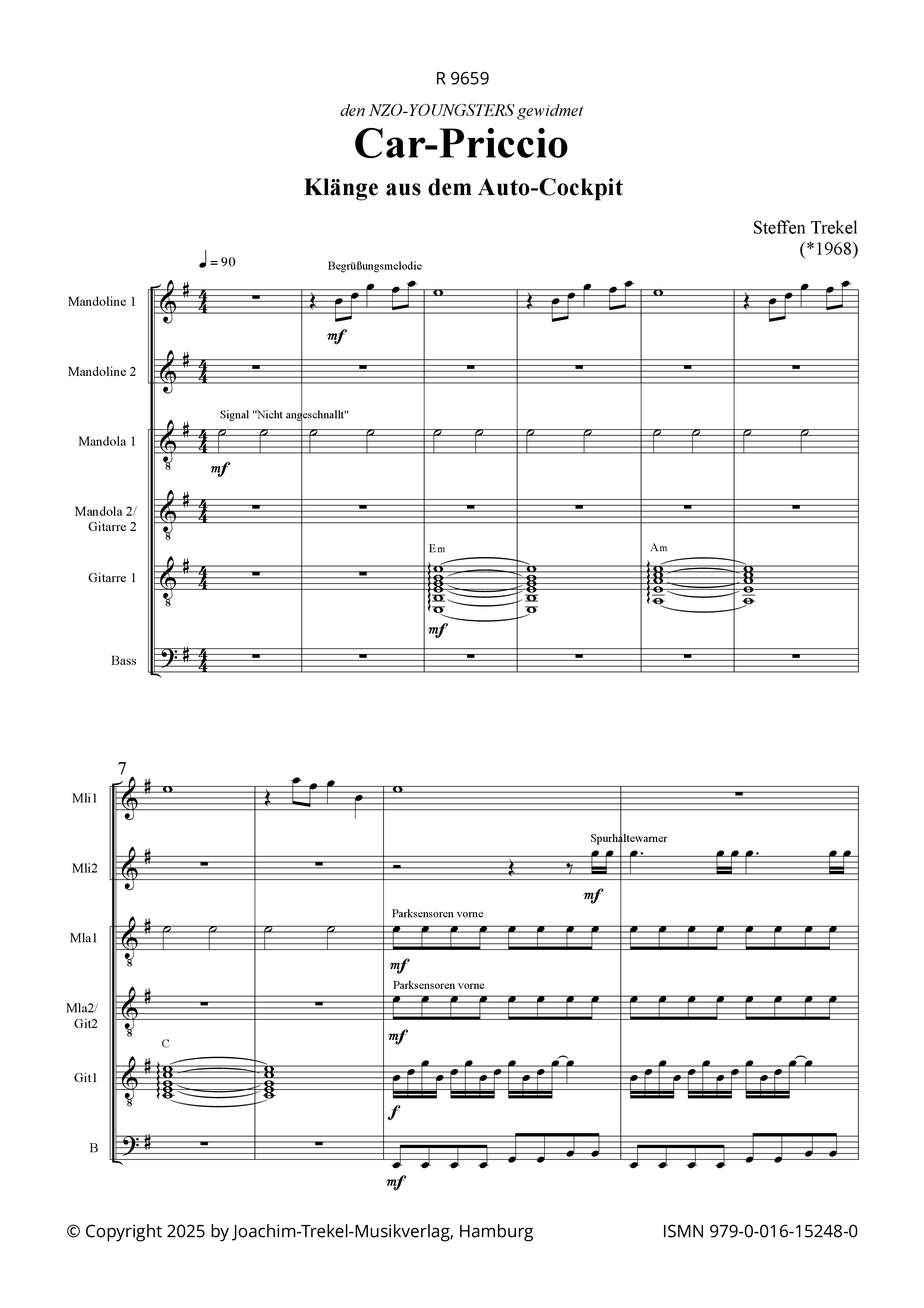 Das „Car-Priccio“ entstand für die von Steffen Trekel geleiteten NZO-YOUNGSTERS, den Nachwuchsorchestern des Norddeutschen ZupfOrchesters. Er verarbeitet darin die Klänge und Geräusche, die ihn auf seinen Fahrten in seinem neuem Auto („Car“) begleiten: