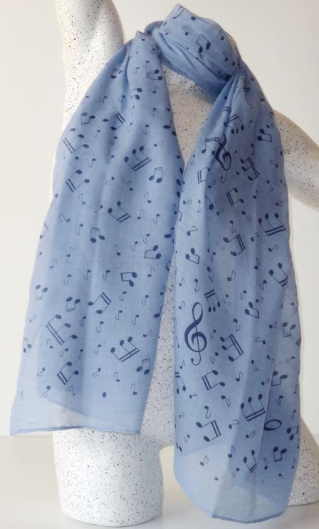 | Schal royalblau/weiß mit Violinschlüssel und Noten