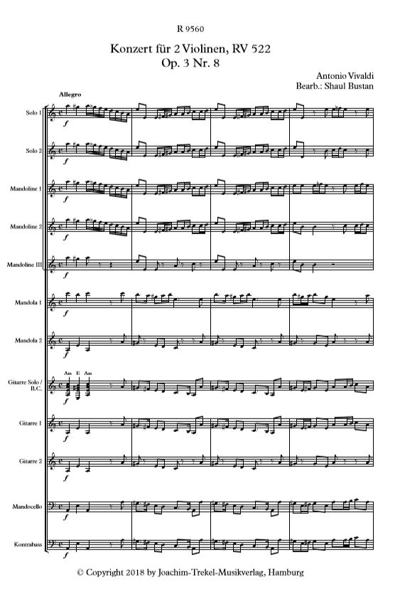 Antonio Vivaldi Konzert für 2 Violinen op. 3 Nr. 8 RV 522 R 9560
