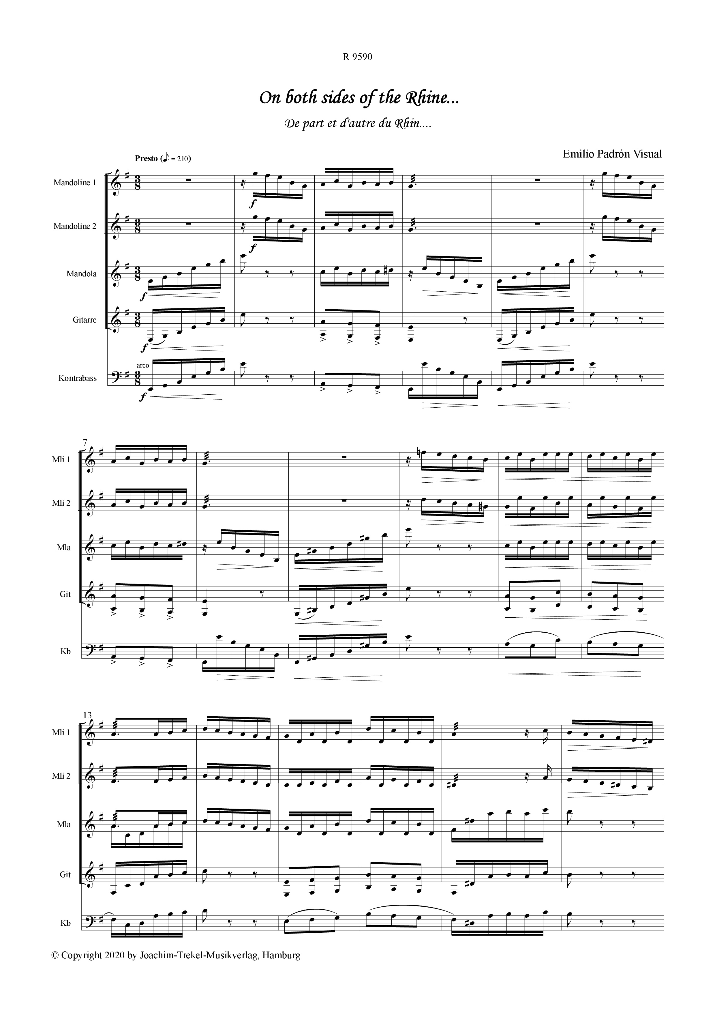 “On both sides of the Rhineö (De part et d'autre du Rhin) is a journey, a reflexive and constant journey across the landscape of life. It describes the process through which we are trying to be faithful to ourselves while assimilating the daily new influences, new tasks and the new schemes to which life pushes us to adapt. This schemes are represented by the Presto chapters at the beginning and at the end of the piece. Everything that happens in between is about its main character trying to manifest who he is and raising up his voice above the rules and above what he was told to do when he decided to start this journey.